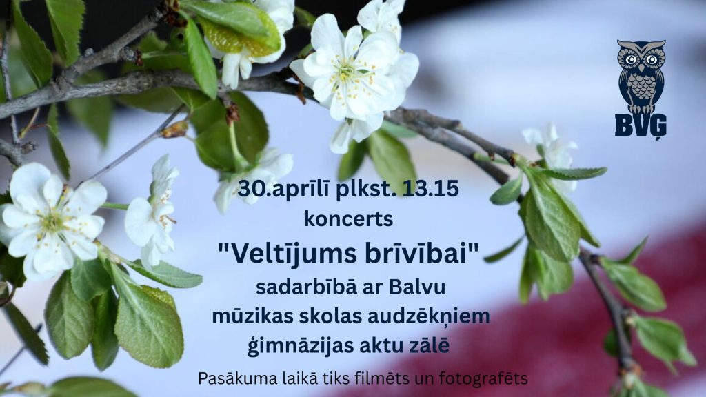 6. maijs plkst. 10.40 Balvu valsts ģimnāzija (Dārza iela 2, Balvi);