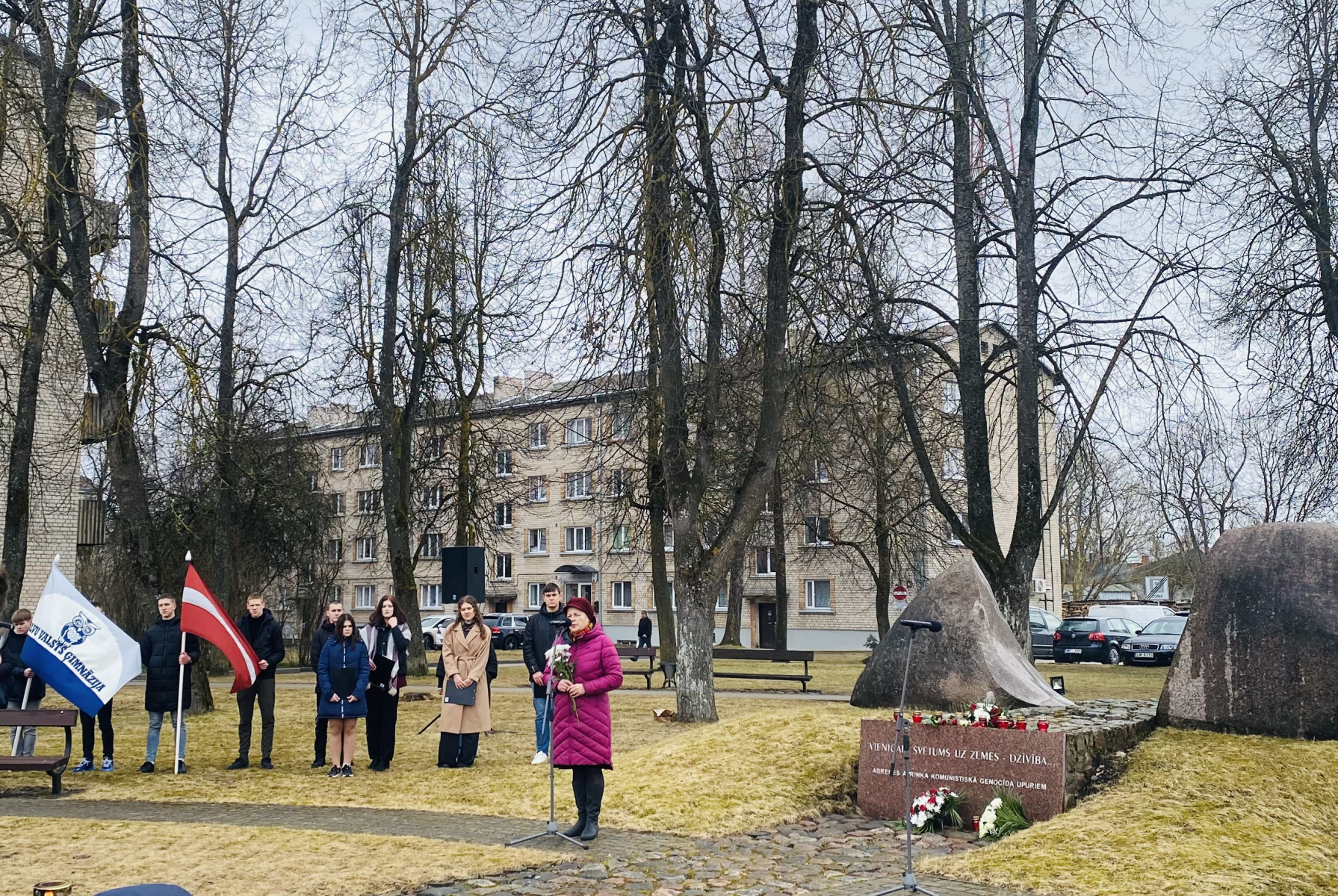 Šī gada 25. martā Balvu Valsts ģimnāzijas administrācija, pedagogi un skolēni vienotā gājienā devās pie pieminekļa Abrenes apriņķa komunistiskā genocīda upuriem, lai piedalītos Balvu novada muzeja organizētajā piemiņas pasākumā.