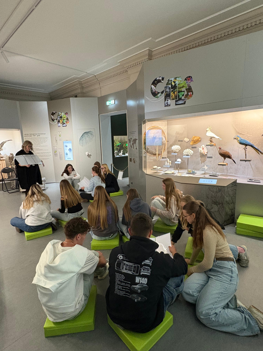 Pēcpusdienā skolēni devās uz Latvijas Nacionālo dabas muzeju, kur, sadaloties grupās, apmeklēja divas izzinošas nodarbības.