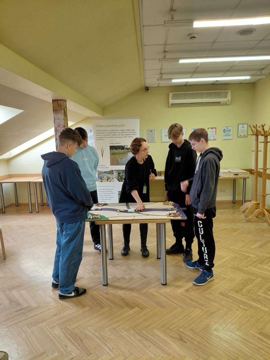 Nodarbībā “Ūdens piesārņojums” skolēni uzzināja par ūdens piesārņojuma cēloņiem un ietekmi uz ūdens ekosistēmām, kā arī meklēja risinājumus ūdens kvalitātes uzlabošanai un bioloģiskās daudzveidības saglabāšanai.