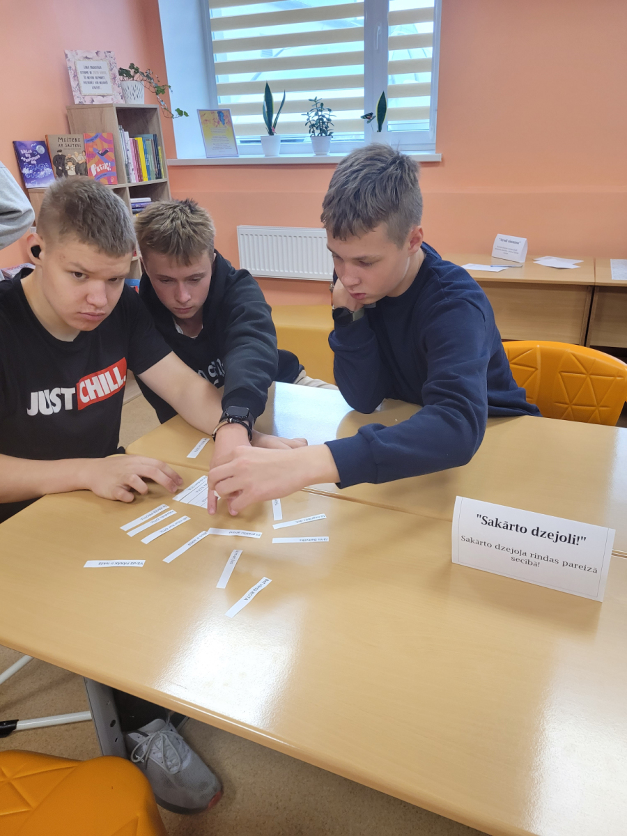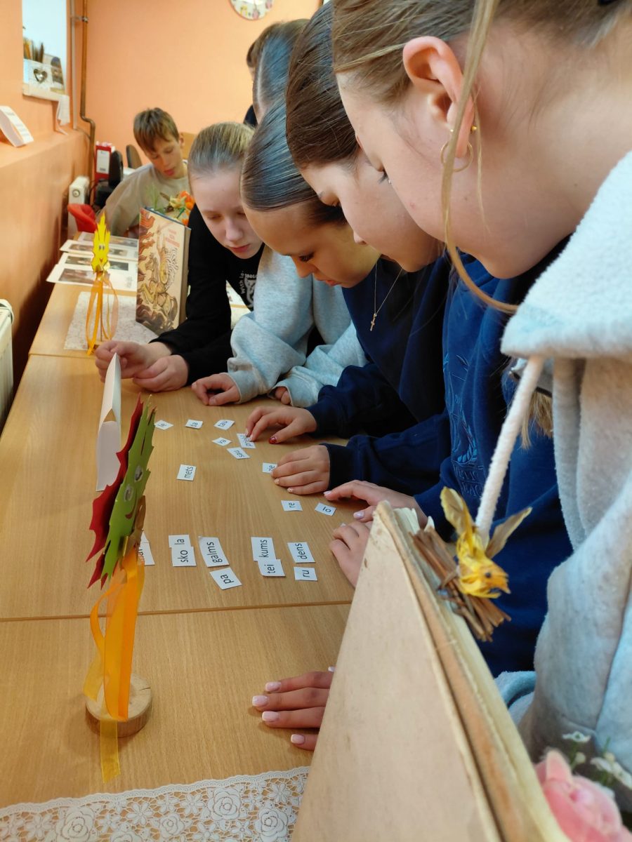 Izglītojamie iesaistījās dažādās radošās un valodas prasmes attīstošās aktivitātēs: meklēja sinonīmus dotajiem vārdiem, no piedāvātajām zilbēm veidoja vārdus, vingrināja izrunu, lasot mēles mežģus, un kārtoja dzejoļu rindas pareizā secībā. Tāpat viņi lasīja citātus par valodu un mēģināja noteikt, kuram autoram katrs citāts pieder. Šīs aktivitātes ne tikai veicināja lasītprasmi, bet arī stiprināja valodas pratību un rosināja interesi par latviešu valodu un tās skaistumu. Stundas noslēgumā izglītojamie saņēma bibliotekāres sagatavotās grāmatzīmes kā nelielu balvu par aktivitāti.