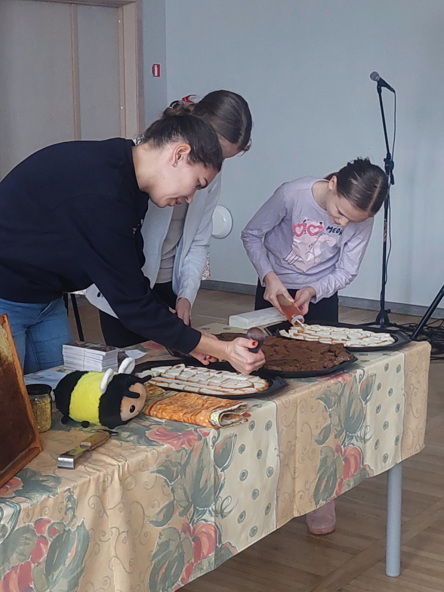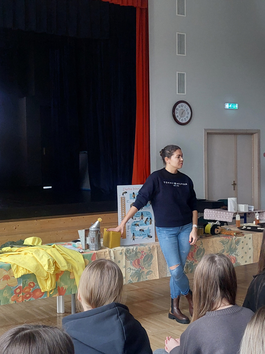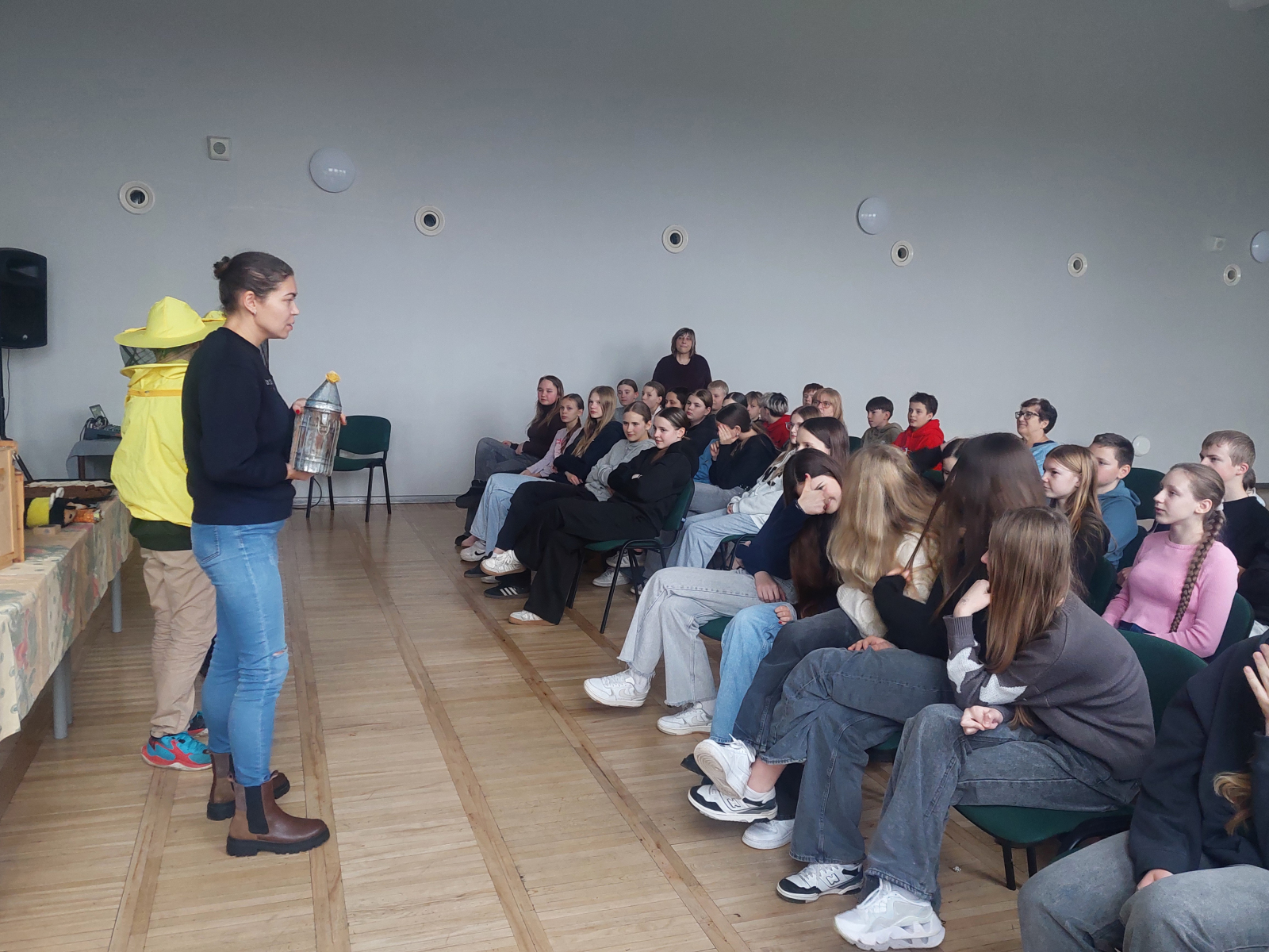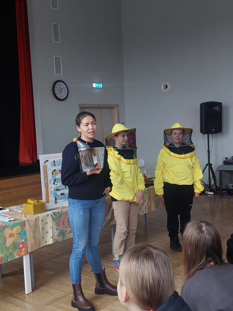 Savukārt biškope Sintija jauniešiem pastāstīja, kā rodas medus, kāpēc tas jālieto, kāds ir medus rāmīša atvākošanas un medus sviešanas process, un uzsvēra ilgstošu komandas darbu. Jaunieši varēja iejusties bitinieka lomā, aplūkot bišu vasku, medus rāmīti, uzzināt, ko garšīgu var pagatavot no medus. Un kur nu bez medus degustācijas! Skolēniem bija iespēja degustēt griķu, liepu un dažādu ziedu medu.