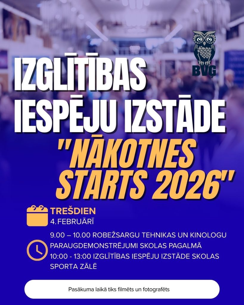 4. februārī Balvu Valsts ģimnāzijā norisināsies tradicionālā izglītības iespēju izstāde “Nākotnes starts 2026”. Izstādes laikā būs iespēja iepazīties ar dažādām izglītības iestādēm, mācību programmām un profesiju virzieniem. Uz tikšanos Balvu Valsts ģimnāzijā!