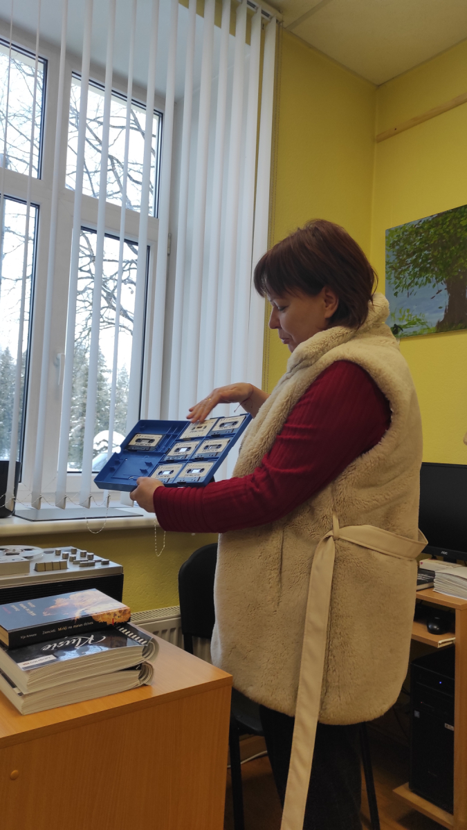 Uzzinājām, ka šī bibliotēka mūsu pilsētā ir viena no tām septiņām Latvijā, kas apkalpo ne tikai Balvu novada, bet arī citu novadu lasītājus – cilvēkus ar redzes traucējumiem un funkcionālo lasītnespēju. Bibliotēkas piedāvājums aug līdzi laikam un tehnoloģiju iespējām. Apskatījām un redzējām piedāvājumu no senāka uz mūsdienīgāku – no magnetafonu kasetēm līdz diskiem, dažādām grāmatām, arī radītām ar mākslīgā intelekta palīdzību. Skolēniem bija iespēja redzēt grāmatas braila rakstā, redzēt, kā šis raksts tiek drukāts speciālā iekārtā, kā arī izmēģināt rakstīt savu vārdu pašiem.