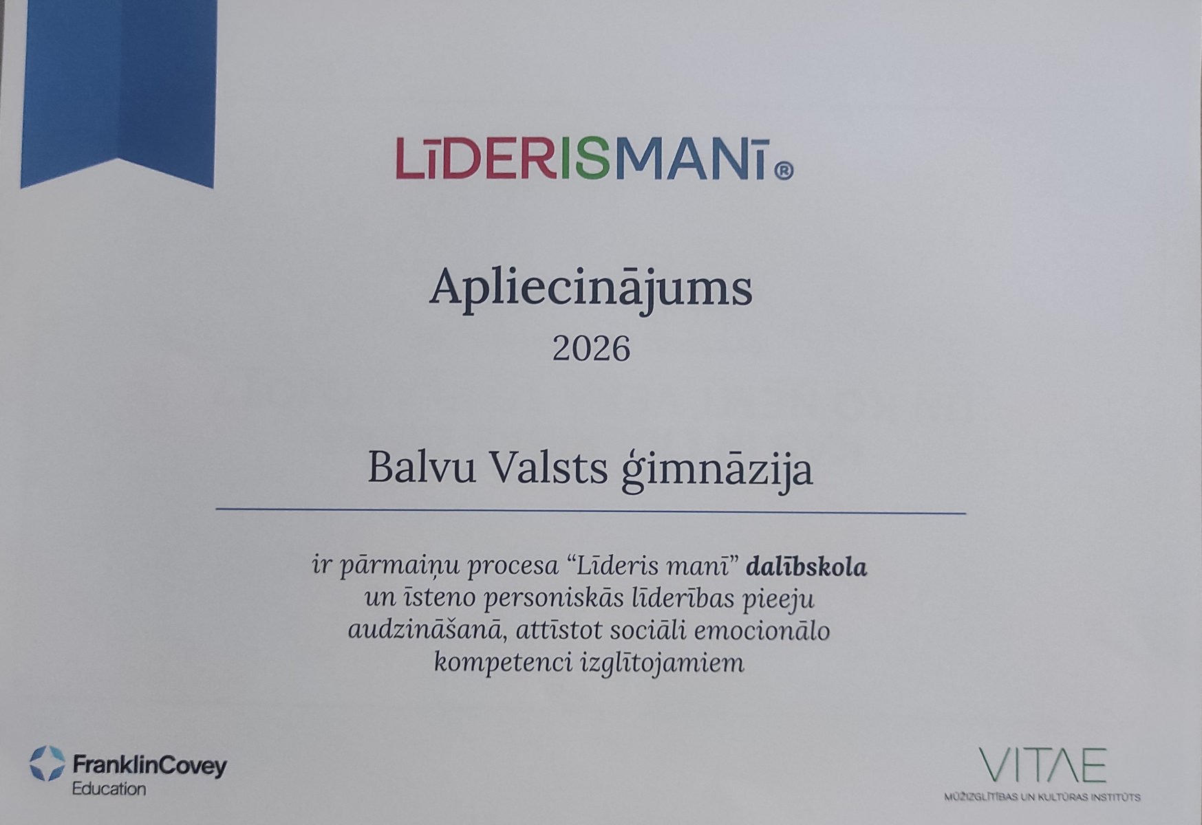 Šī gada 22.janvārī ģimnāzijas skolotājas Sandra Mozule un Gunta Salmane piedalījās “Līderis manī” mācībās ieviešanas komandām Mārupes Valsts ģimnāzijā.