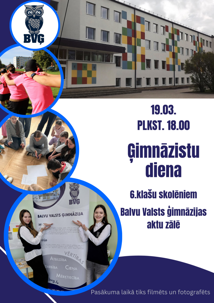 Gaidīsim Ģimnāzistu dienā 6. klašu skolēnus un vecākus, lai iepazīstinātu ar skolas vidi un iespējām Balvu Valsts ģimnāzijā!