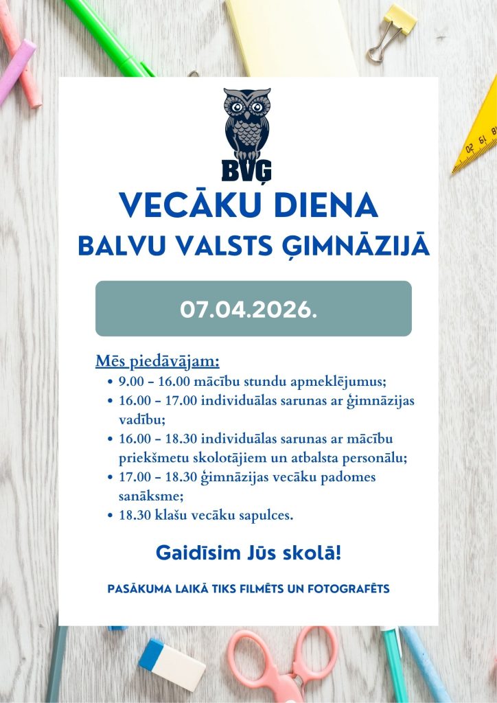 Būsim priecīgi Jūs redzēt un kopīgi veidot veiksmīgu sadarbību bērnu izglītības labā! Uz tikšanos Balvu Valsts ģimnāzijā!