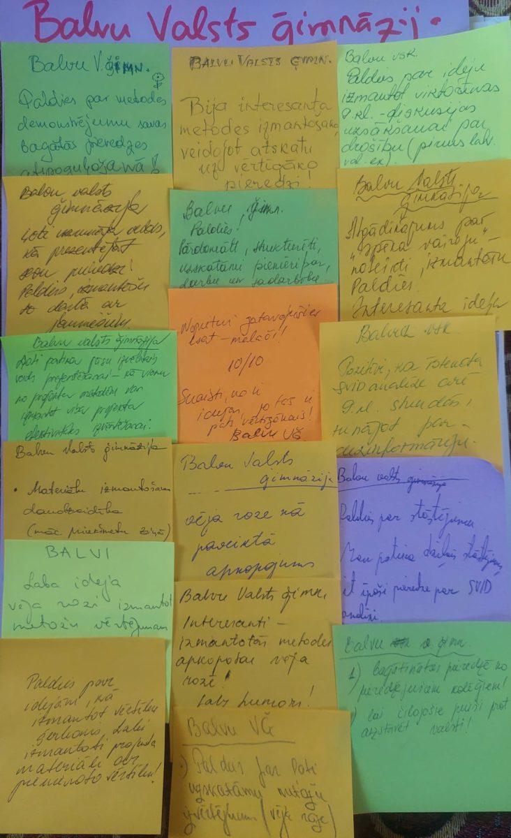 Ar metodisku semināru noslēdzies LR Aizsardzības ministrijas un Izglītības attīstības centra projekts “Metodisks atbalsts izglītotājiem Valsts aizsardzības koncepcijas sadaļas “Noturība, rīcībspēja, griba” iedzīvināšanai darbā ar jauniešiem”, kurā darbojās arī Balvu Valsts ģimnāzijas komanda – Ināra Konivale, Laura Saulīte un Mudīte Stepanova.