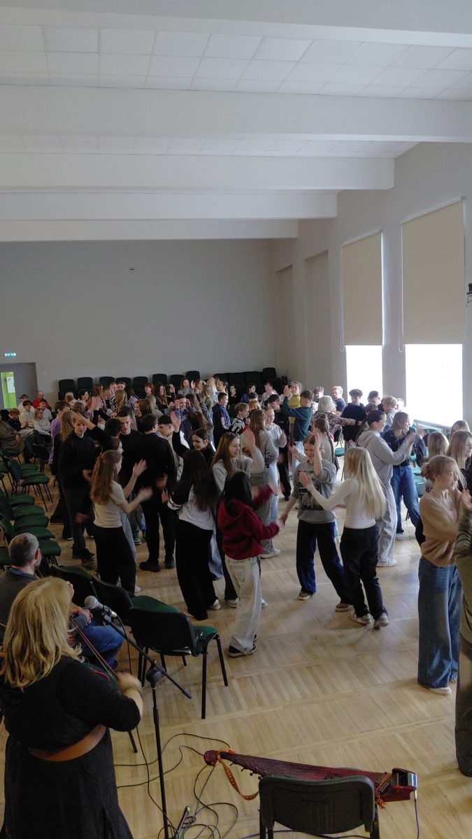 2026.gada 16.aprīlī programmas „Latvijas skolas soma” ietvaros Balvu Valsts ģimnāzijā norisinājās izglītojoša un muzikāli aktīva nodarbība „Danči un rotaļas – Lielā diena”, kurā piedalījās 7.–9. klašu skolēni.