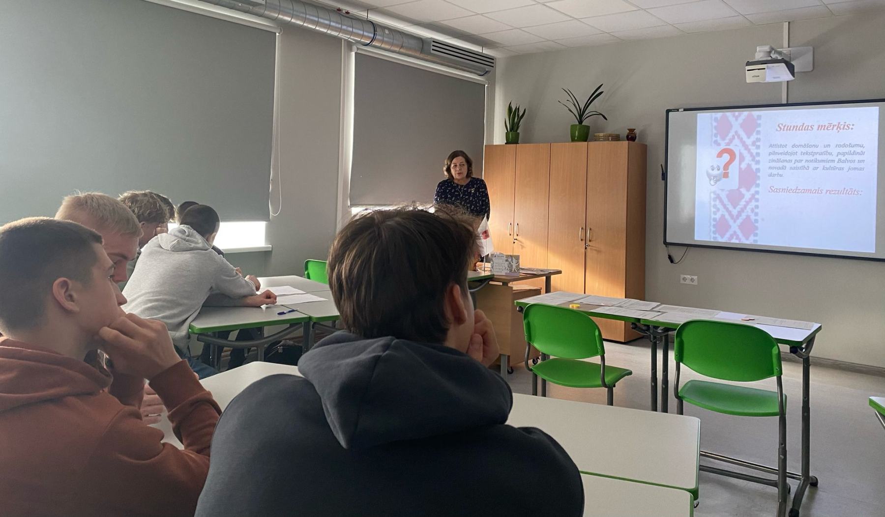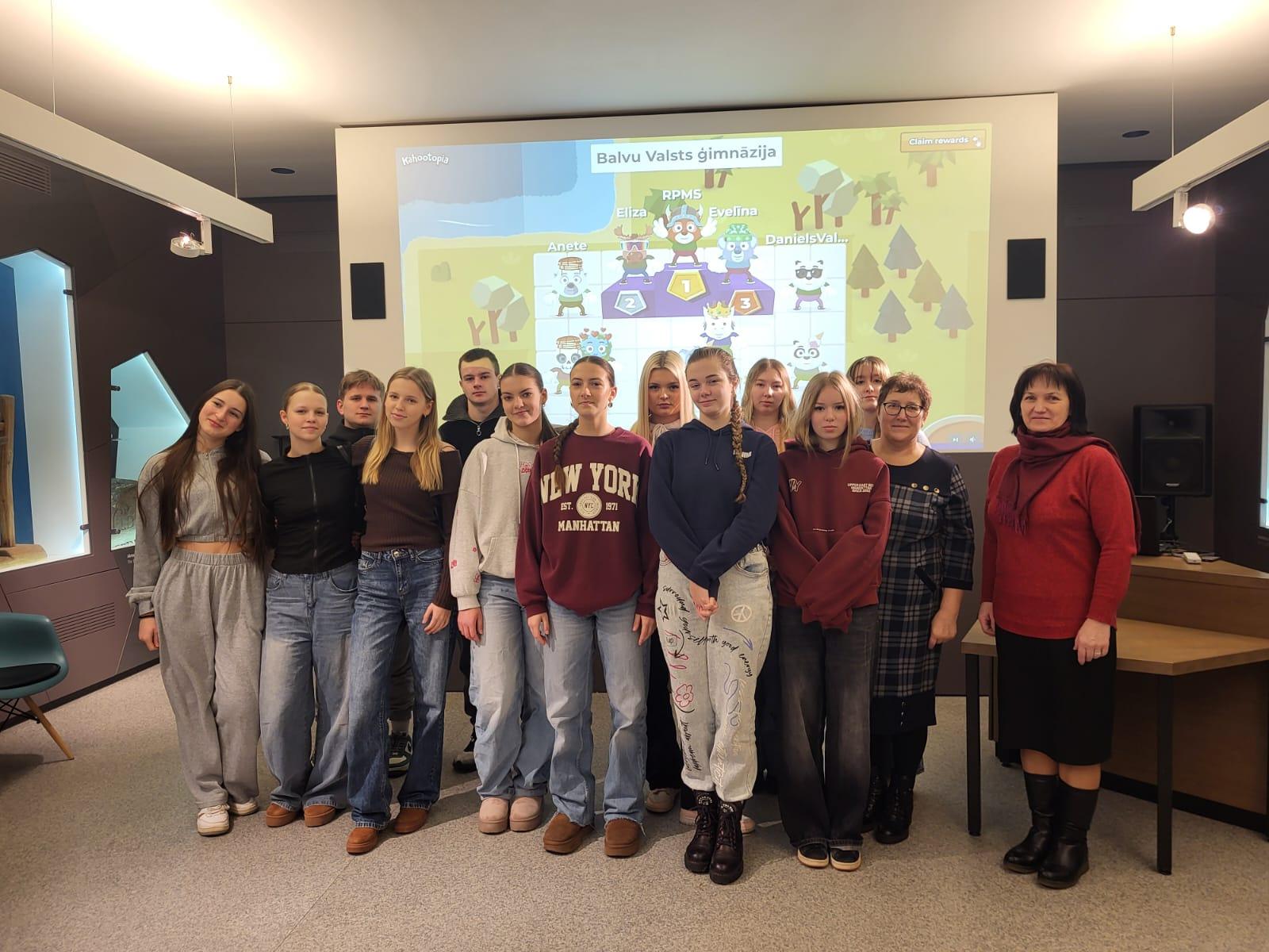Stundas sākumā bija vairāki temata “Aktuālais kultūras jomā Balvu pilsētā un novadā” aktualizācijas uzdevumi. Ar dažādām stratēģijām tika noskaidrots, kas ir kultūra, kāpēc mūsu pilsētai februārī ir nozīmīgs gan 7., 11. un 25. februāris, kādas nozīmīgas jubilejas tiek atzīmētas 2025. gadā. Skolēni nosauca, ka pilsētai aprit 97. dzimšanas diena, bet Balvu Kultūras namam – 70 gadi. Arī Balvu Valsts ģimnāzijas 95 gadu jubilejas pasākums notiks 2. maijā.