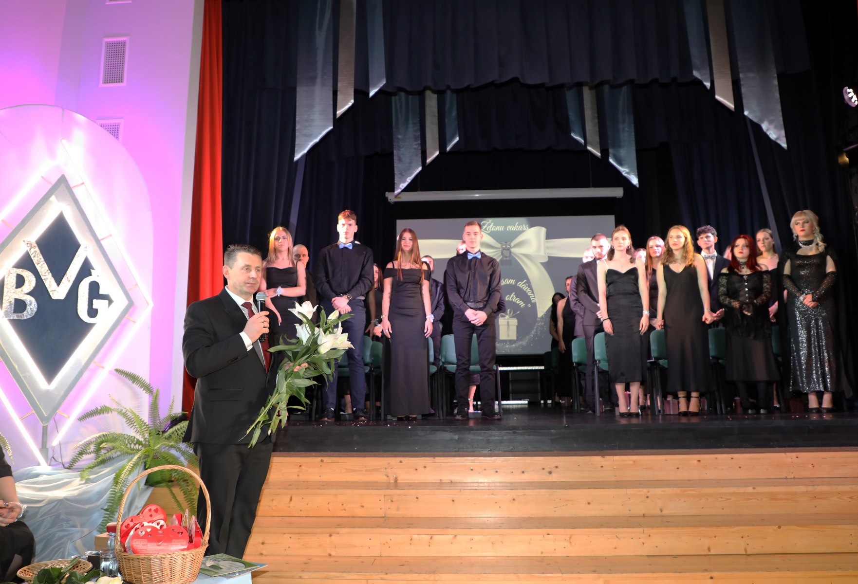 Šajā vakarā abiturientus ik uz soļa pavadīja vecāku, pedagogu un viesu gandarījuma un prieka pilnie skatieni. Jauniešiem tika teikti sirds silti vārdi no Balvu novada pašvaldības domes priekšsēdētāja Sergeja Maksimova, ģimnāzijas direktores Kristīnes Leles, klases audzinātājām – Ināras Konivales un Sandras Mozules.