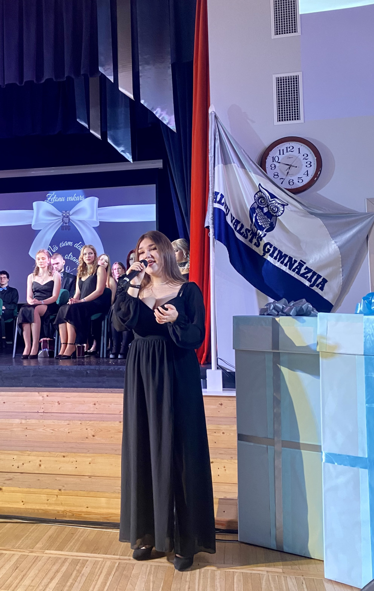 Jauniešus iepriecināja Līgas Morozas-Ušackas deju studijas dejotāji un 11. klašu meiteņu enerģiskais priekšnesums, skolotājas Ilutas Tihomirovas dziedātāji Rebeka un Hugo, kā arī daiļā viesmāksliniece Sigita Keiša. Pasākumu vadīja ģimnāzijas aktīvie jaunieši Nadīna Līva Logina un Leo Eliass Morozs.