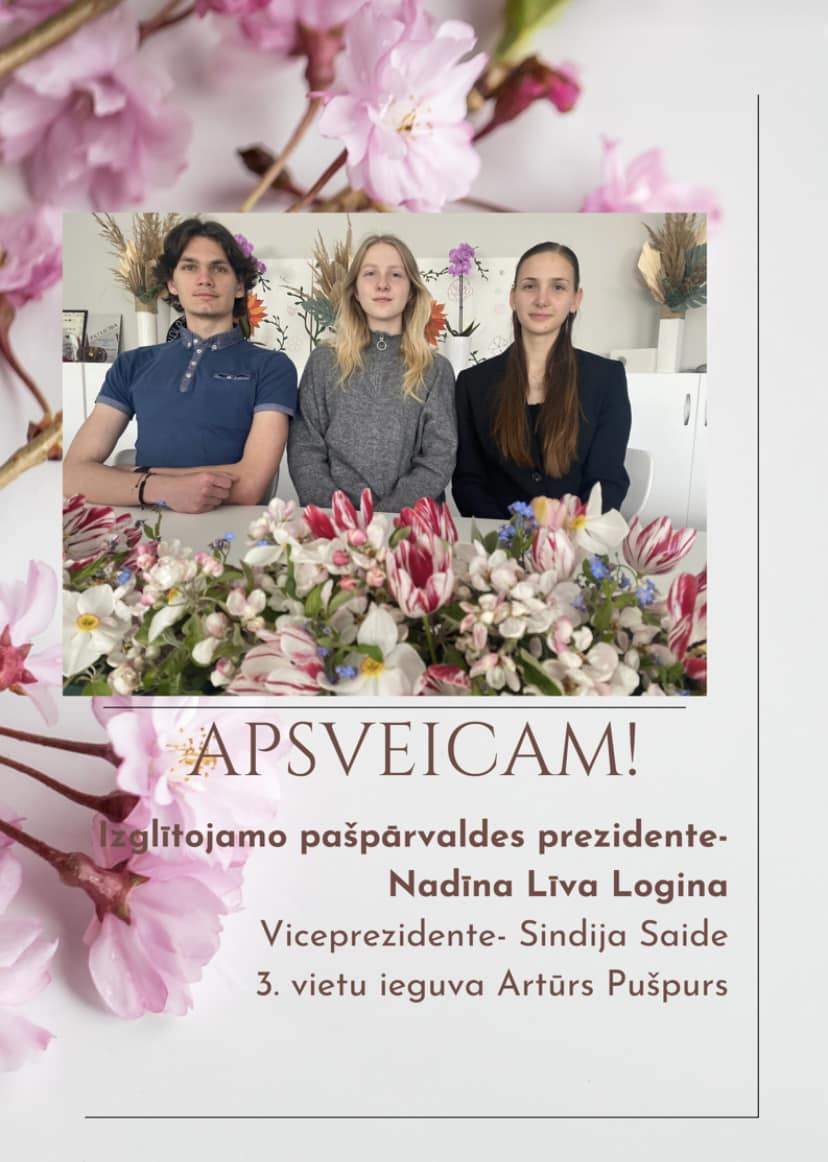 Priecājamies, ka šogad prezidenta amatam pieteicās trīs lieliski jaunieši, kas arī līdz šim aktīvi darbojušies izglītojamo pašpārvaldē – Artūrs Pušpurs, Nadīna Līva Logina un Sindija Saide.
