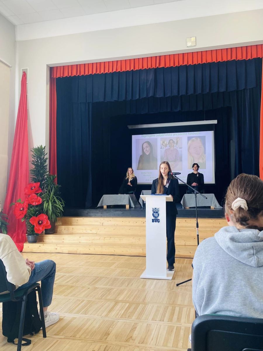Ģimnāzijā izglītojamo pašpārvaldes vēlēšanas notika Eiropas nedēļas ietvaros, ievērojot demokrātisku vēlēšanu pamatprincipus – pietuvinot tās Saeimas un pašvaldību vēlēšanu norisei. Pašpārvaldes prezidenta kandidāti izstrādāja savas vēlēšanu programmas un ar tām iepazīstināja vēlētājus – BVĢ skolēnus, pedagogus un tehniskos darbiniekus. Artūrs Pušpurs solīja skolas dzīvē vēl intensīvāk iedzīvināt skolas vērtības – atbildību, cieņu, sadarbību un mērķtiecību. Nadīna Līva Logina kā galvenos savas darbības atslēgas vārdus minēja vienlīdzību, radošumu un attīstību, bet Sindija Saide akcentēja saliedētu un stipru komandas darbu, skolas attīstību, kultūras un tradīciju stiprināšanu.