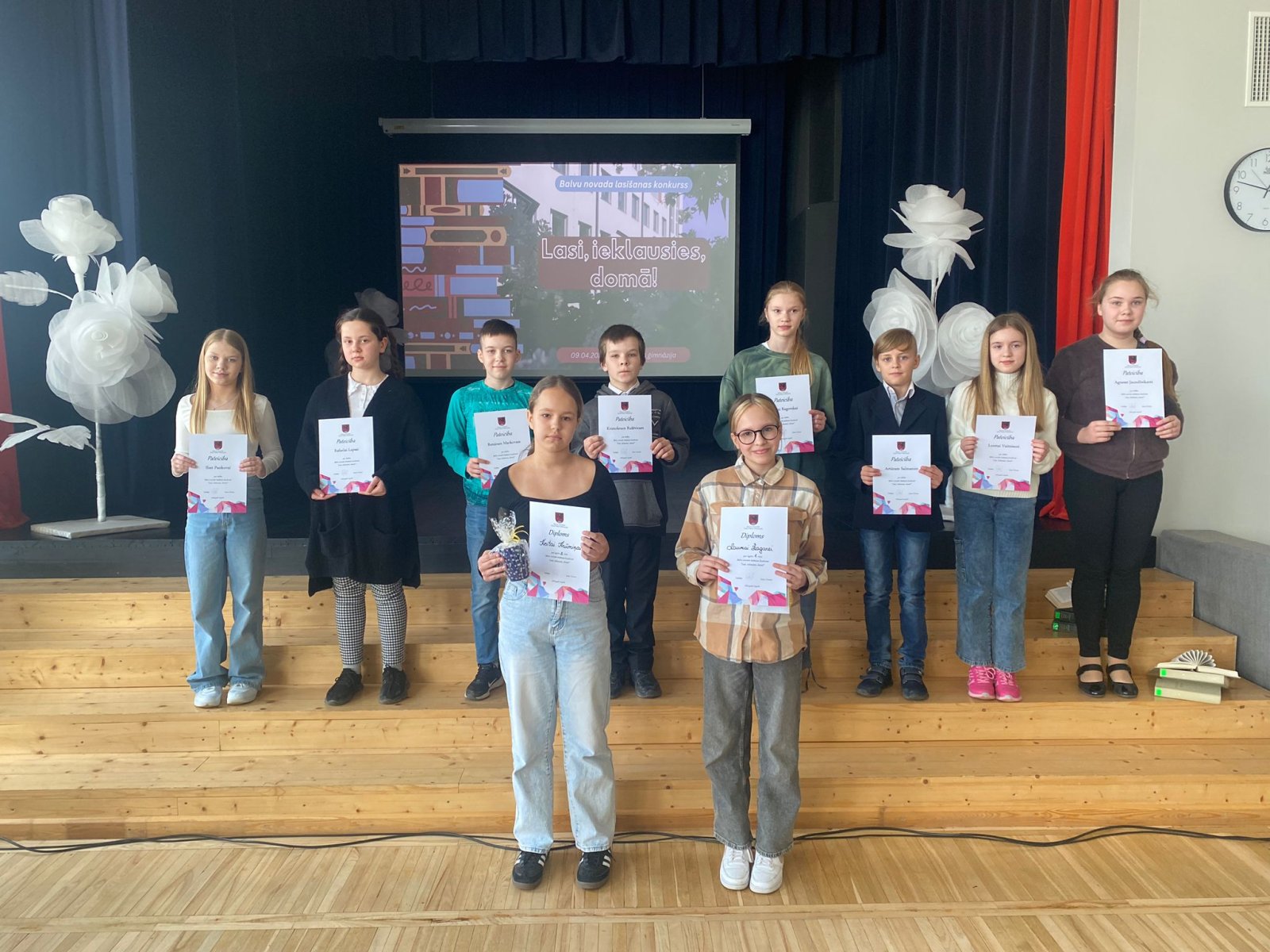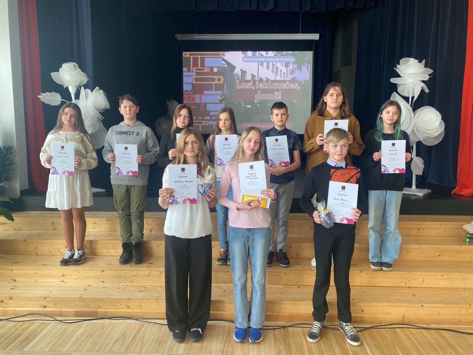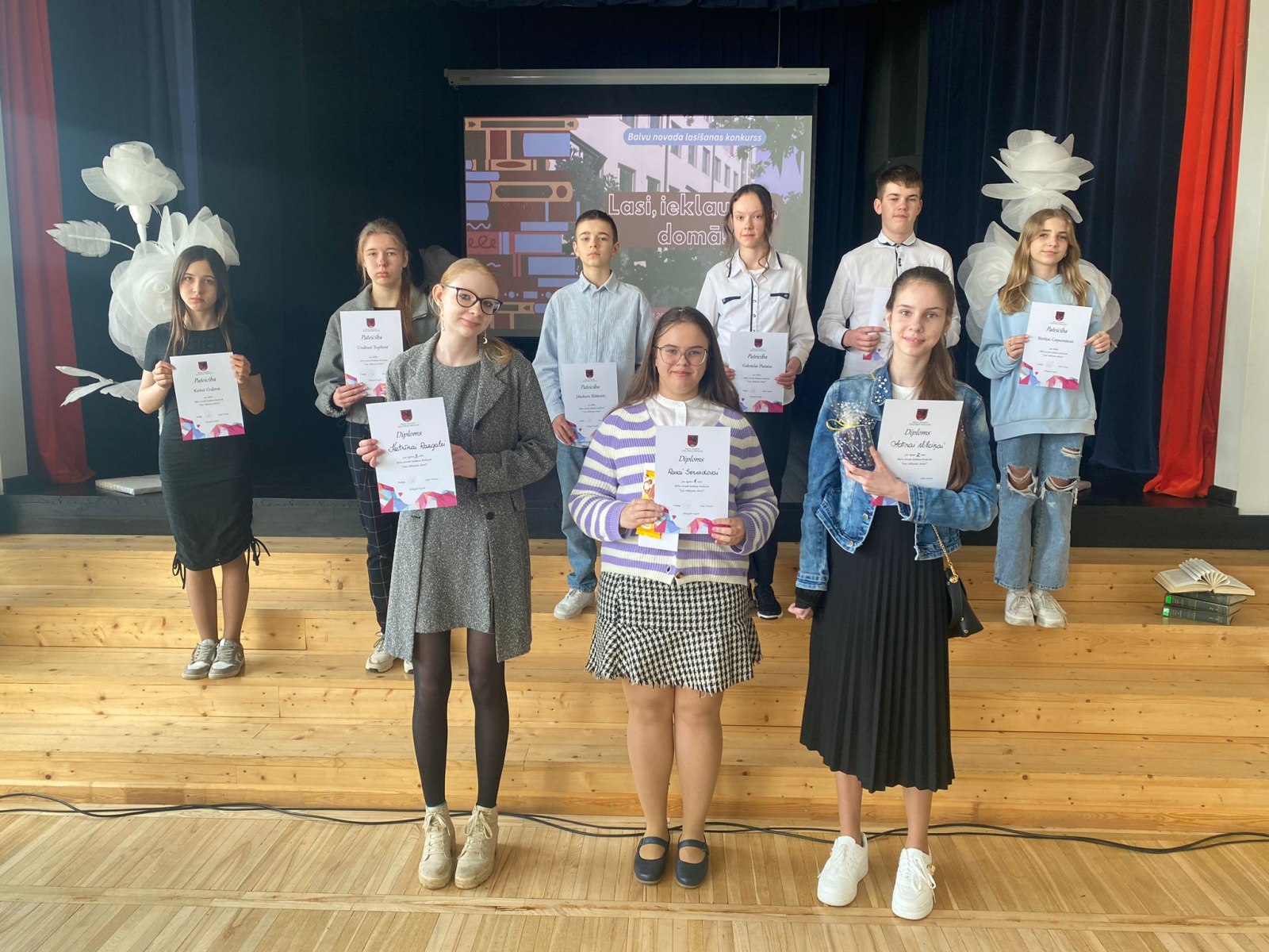 Šī gada 9.aprīļa pavasarīgi saulainais rīts Balvu Valsts ģimnāzijā pulcināja trīsdesmit divus 5., 6., 7. klašu izglītojamos un viņu skolotājus no visām Balvu novada skolām lasīšanas konkursā “Lasi, ieklausies, domā!”. Konkursu organizēja Balvu novada skolu bibliotekāru metodiskā atbalsta jomas kolēģi un tās vadītāja Guna Dreimane.