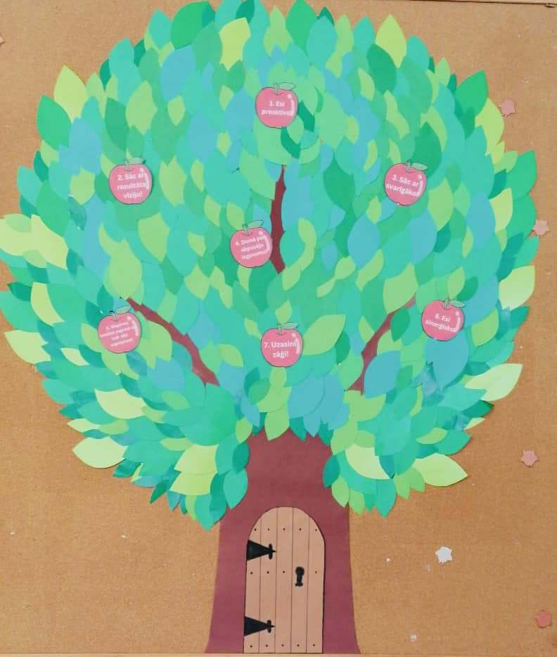 Kopā darbojoties un atsvaidzinot zināšanas par pārmaiņu procesa izglītībā “Līderis manī” septiņiem ļoti veiksmīga cilvēka paradumiem, klašu kolektīvi savās klases telpās veidoja Līderības jeb 7 paradumu koku. Uzdevums visiem bija viens, bet rezultāts pārsteidza savā dažādībā un krāšnumā.