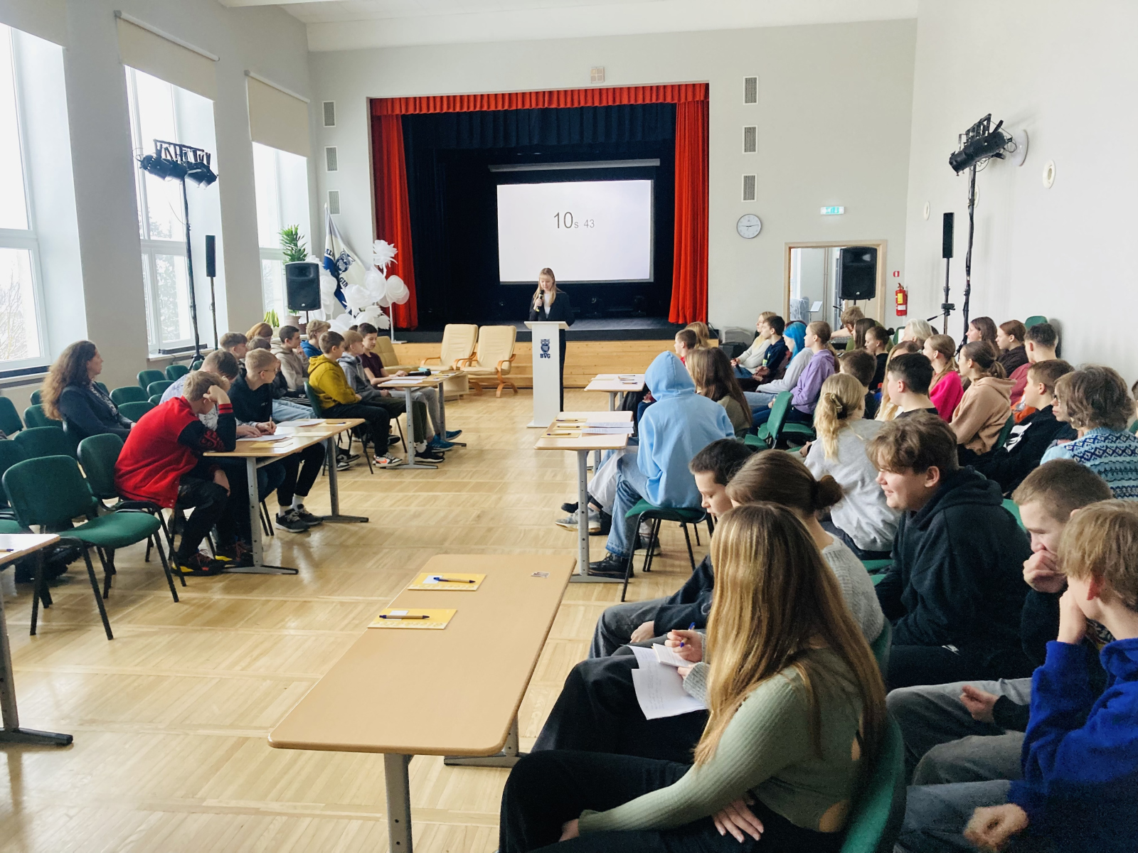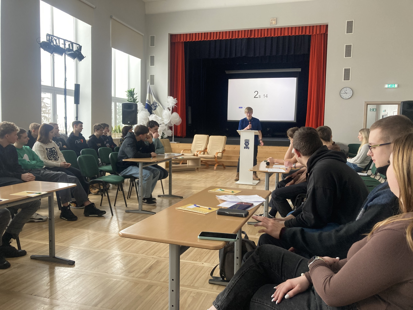 Savas tālākizglītības iespējas skolēni varēja izzināt, tiekoties ar mūsu sadarbības partneriem – Rēzeknes Tehnoloģiju akadēmijas pārstāvjiem. Jauniešiem tika piedāvāts vērot Viļakas robežsardzes kinologu paraugdemonstrējumus. Ģimnāzijas skolēniem kopā ar citiem Balvu novada skolu jauniešiem bija iespēja apmeklēt ikgadējo izglītības iespēju izstādi “Kur studēt 2024?” ģimnāzijas sporta zālē. Priecājamies, ka šogad izstādei bija pieteikušās 23 augstskolas un mācību iestādes. Paldies karjeras konsultantei Agitai Kukurānei, saimniecības vadītājai Monikai Baikovai, tehniskajiem darbiniekiem un sporta skolotājiem par ieguldīto darbu izstādes organizēšanā un iekārtošanā!