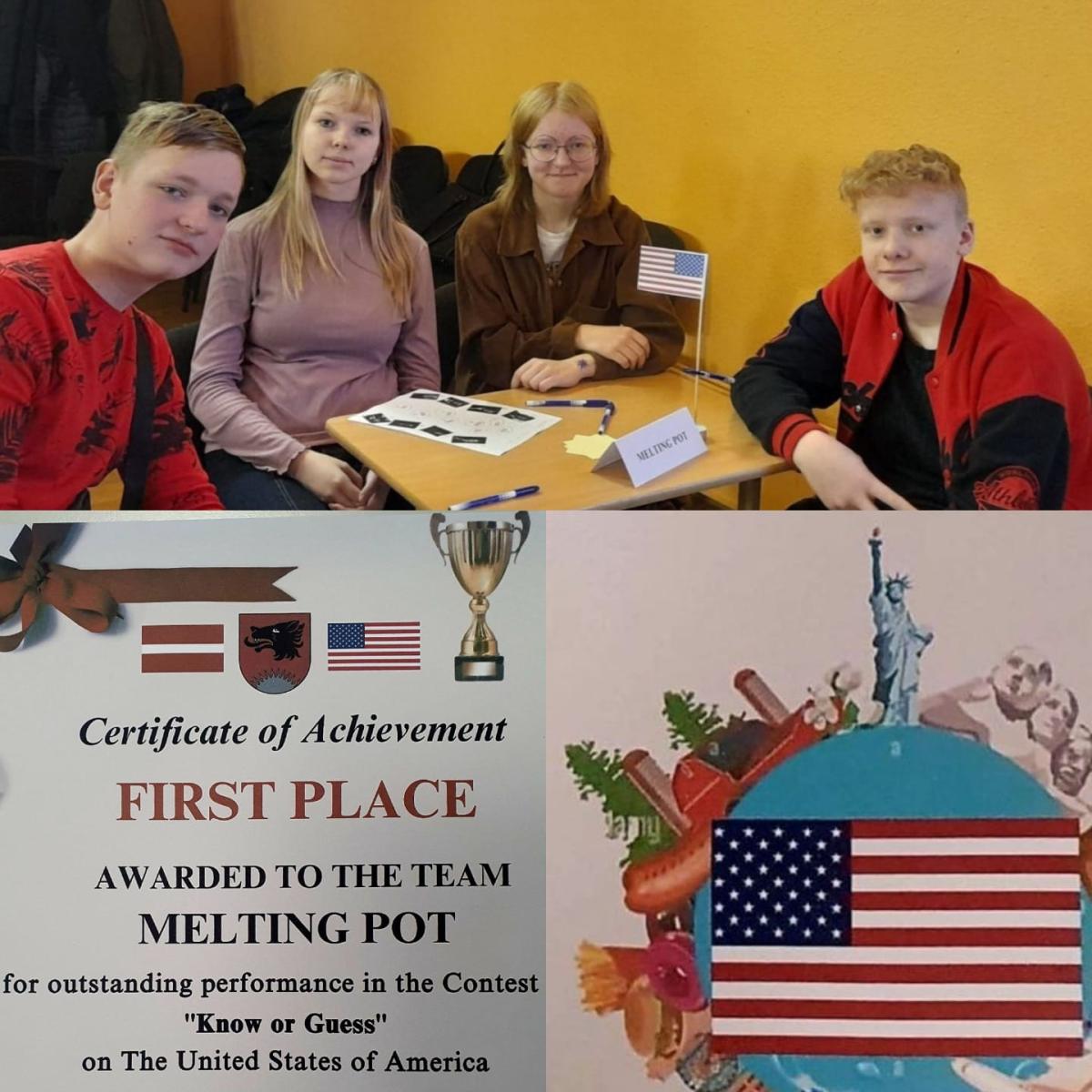 Piektdien, 26.februārī, Tilžā noritēja ikgadējais konkurss angļu valodā „Zini vai mini” 8. un 9.klašu skolēniem. Šogad skolēniem bija jāpierāda savas zināšanas ASV vēsturē, ģeogrāfijā, kultūrā un tradīcijās, kā arī slavenību atpazīšanā. Esam priecīgi, ka 12 komandu konkurencē komanda „MeltingPot”, kuru pārstāvēja 8.b klases skolēni Armands Trubņiks, Kristers Endijs Žogota un 8.c klases skolnieces Madara Gržibovska un Keita Zaharāne, ieguva 1. vietu. Lepojamies ar 8.a klases skolēniem Edgaru Boldānu, Adrianu Jonaiti, Beāti Kudrjavcevu un Līgu Žugu, kuru komanda „Freedom RAAH” iekļuva pirmajā pieciniekā. Kā atzina skolēni – konkurss bija īsts izaicinājums un adrenalīna deva. Paldies Tilžas pamatskolas direktorei, skolotājiem un skolēniem par sirsnīgo uzņemšanu un pozitīva noskaņojuma radīšanu visas dienas garumā!