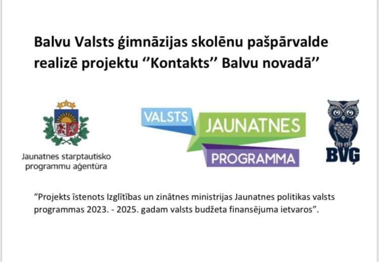 2023./2024.m.g. pirmajā semestrī Balvu Valsts ģimnāzijas izglītojamo pašpārvalde realizēja projektu, kas bija paredzēts jaunajiem ģimnāzijas septītklasniekiem, kuri uzsāka mācības mūsu skolā šajā mācību gadā. Uzsākot mācības 7. klasē, tiek izveidoti jauni klašu kolektīvi, tāpēc bija svarīgi palīdzēt iejusties jaunajā skolā un klasē, ļaut sajusties gaidītiem un pieņemtiem, sekmēt jauniešu labsajūtu un palīdzēt izprast savas emocijas.
