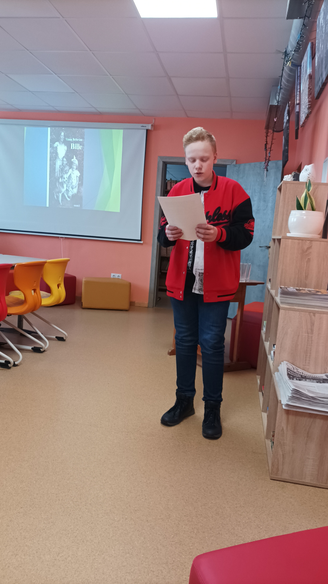 Šī gada 9. martā uz skolas bibliotēku devās 7. klašu izglītojamie, lai piedalītos lasīšanas konkursa “ Lasi, ieklausies, domā!” pusfinālā. Konkursa mērķis ir rosināt izglītojamo interesi par lasīšanu, pilnveidot izteiksmīgas lasīšanas prasmes un uzlabot izlasīta teksta izpratnes iemaņas. Konkursā dalībniekus uzrunāja skolas bibliotekāre, ieskicējot konkursa norisi, darba uzdevumus, vērtēšanas kritērijus, pasākumu turpināja skolniece Guntra Gibala ar dalībniekiem izspēlējot 8.a klases skolēnu sagatavoto kahoot spēli par konkursa tēmu. Dalībnieki izteiksmīgi lasīja Vizmas Belševicas autobiogrāfiskās triloģijas “Bille” fragmentus un veica rakstisku uzdevumu par darbu, kā arī ilustrēja romāna fragmentus. Rezultātā 7. klases skolnieks Adrians Jonaitis ieguva 1.vietu, Madara Gržibovska – 2.vietu un Edžus Jermacāns- 3.vietu. 4. aprīlī uzvarētāji konkursa pusfinālā piedalīsies Balvu novada lasīšanas konkursa “Lasi, ieklausies, domā!” finālā. Paldies latviešu valodas un literatūras skolotājai Svetlanai Apetri par ieguldīto darbu skolēnu sagatavošanā.