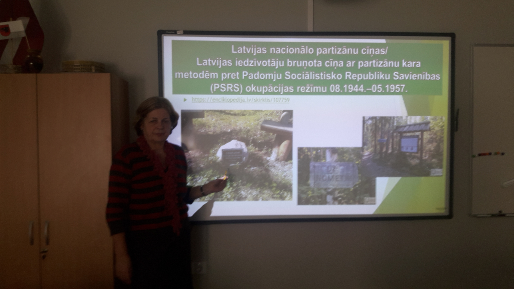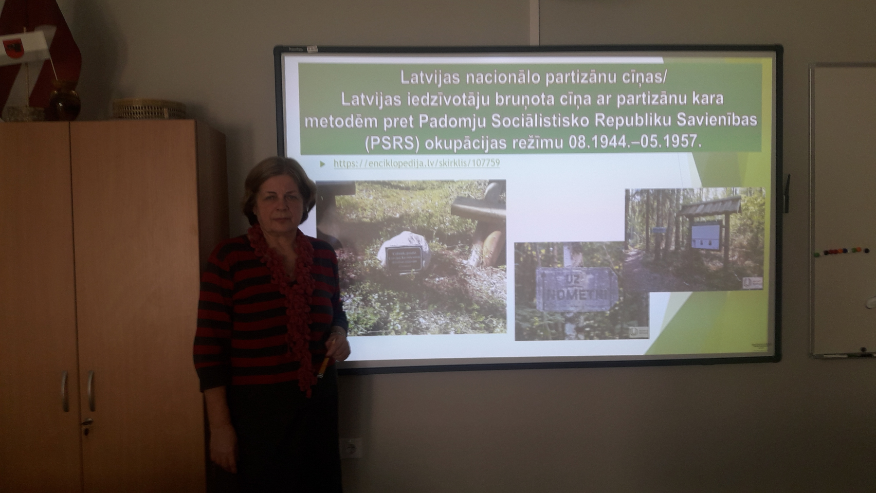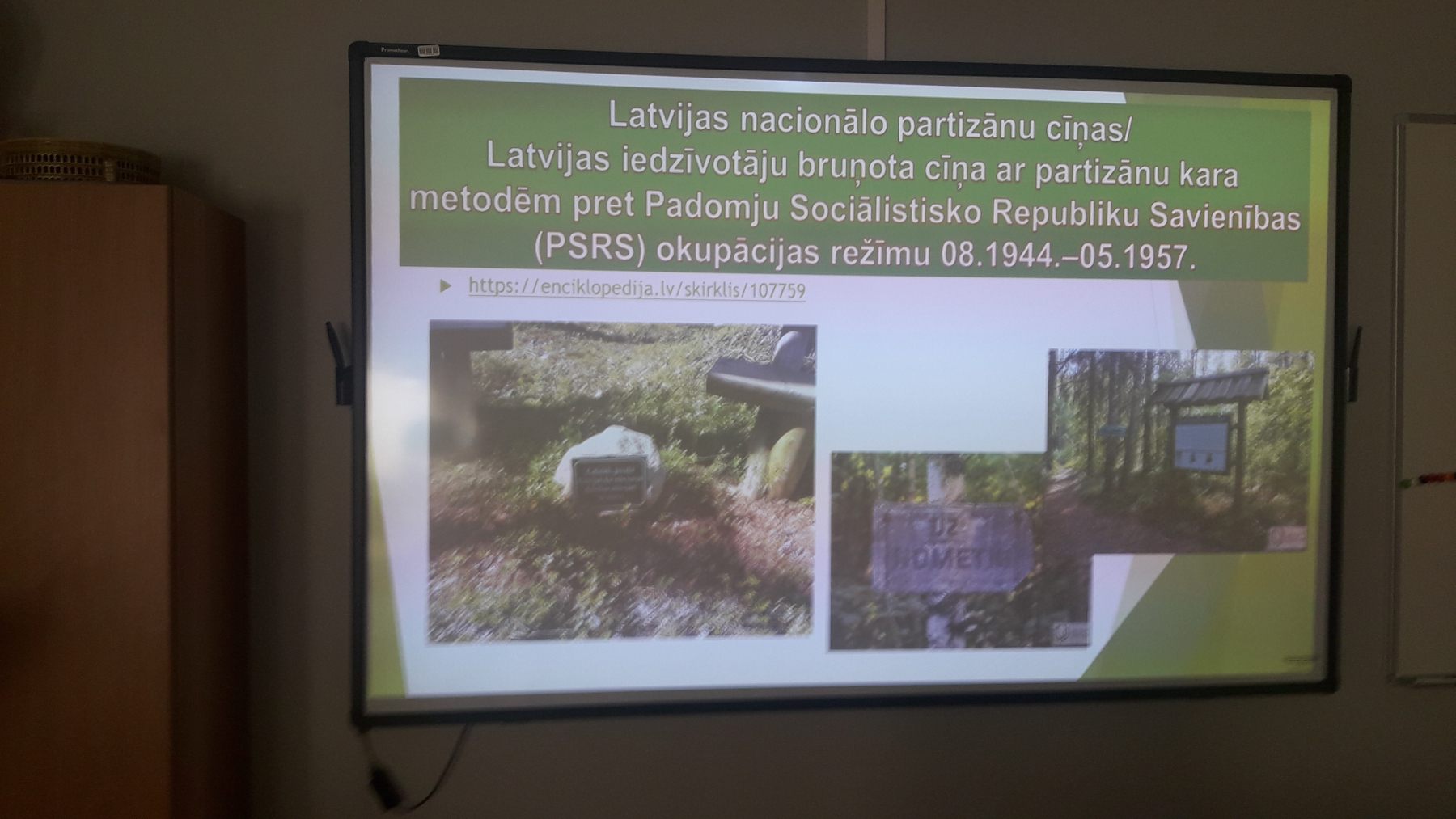 Pirms turpmākā darba grupās skolēni pārrunāja, kāpēc Balvos ir piemineklis Latgales partizānu pulka kritušajiem karavīriem, kuru gadu partizāniem tas veltīts, kas rakstīts piemineklim otrajā pusē (atjaunots arī godinot 1940. – 1954. Latgales brīvības cīnītājus), kāpēc pie skolas sienas 2017.gada 31.maijā atklāta plāksne “Padomju totalitārā režīma represijās cietušo Balvu Valsts ģimnāzijas skolēnu, skolotāju un skolas darbinieku piemiņai”, kādiem notikumiem tā veltīta, kā tas saistīts ar atceres dienām.