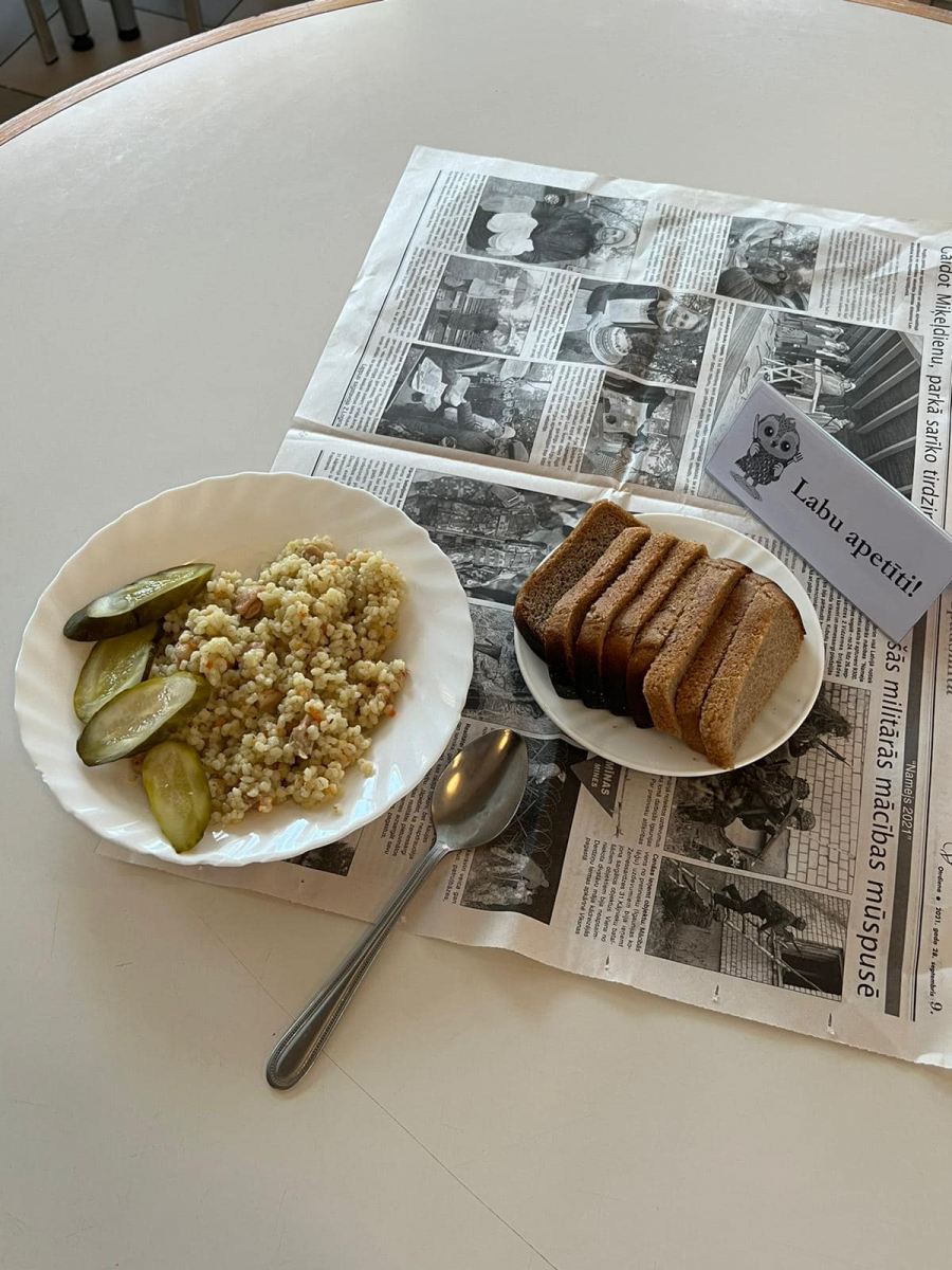 Arī skolas pusdienas šajā dienā bija pietuvinātas barikāžu laika ēdienam. Maltītē bija zemnieku saimniecības “Kotiņi” dāvināto pērļu grūbu biezputra, cepumi un tēja, ēdamzālē skanēja dziesmas, ko tolaik barikāžu dalībnieki dziedāja pie ugunskuriem.