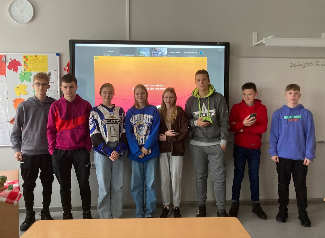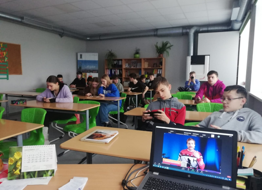 Šī gada 16.decembrī skolas bibliotekāre V. Muzaļevska sadarbībā ar latviešu valodas un literatūras skolotāju A. Dvinsku organizēja 8.a klases skolēnu piedalīšanos Latvijas Nacionālās bibliotēkās tiesšaistes viktorīnā “Ziemassvētki kanonā”. Viktorīnā klases kolektīvs piedalās jau otro gadu pēc kārtas. 8.a klases skolnieces Guntras pārdomas : ” Mēs pieslēdzāmies tieššaistei zoom platformā, atbildējām uz jautājumiem atsevišķā vietnē un no viktorīnas vadītāja Jāņa Kroņa uzzinājām daudz jauna un noderīga. Šajā viktorīnā mēs visa klase ļoti sadarbojāmies, cits citu pārsteidzām ar savām zināšanām par Kultūras kanona vērtībām. Bija prieks piedalīties! Ceram, ka Ziemassvētkus iekļaus Kultūras kanonā. Šī viktorīna ir ļoti noderīga, jo ar tās palīdzību varam daudz ko uzzināt par tautas tradīcijām, vērtībām, un pats svarīgākais- varam vēl vairāk saliedēt klasi”.