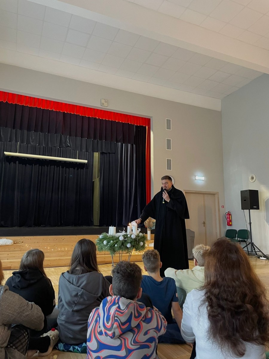 Šajā dienā ģimnāzijā ciemojās Viļakas Romas katoļu draudzes prāvests Guntars Skutels, lai kopā svinētu Ziemassvētku gaidīšanas laika sākšanos. Viņš ar mums runāja par šķietamo un patieso laimes sajūtu. Par ģimeni un garīgajām vērtībām kā laimes avotu, par sirdsapziņu un cilvēka dvēseli, kas ilgojas pēc patiesas Gaismas.