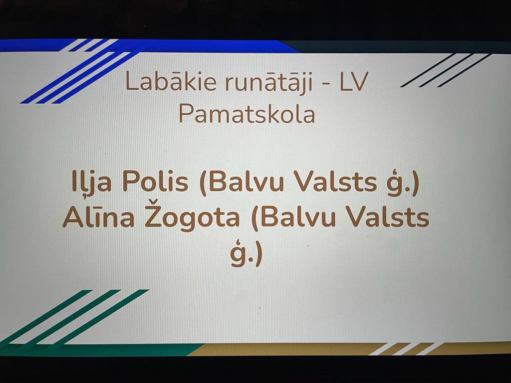 APSVEICAM un LEPOJAMIES ar mūsu komandu, un it īpaši ar Iļju Poli un Alīnu Žogotu kā turnīra labākajam runātājiem pamatskolas grupā!