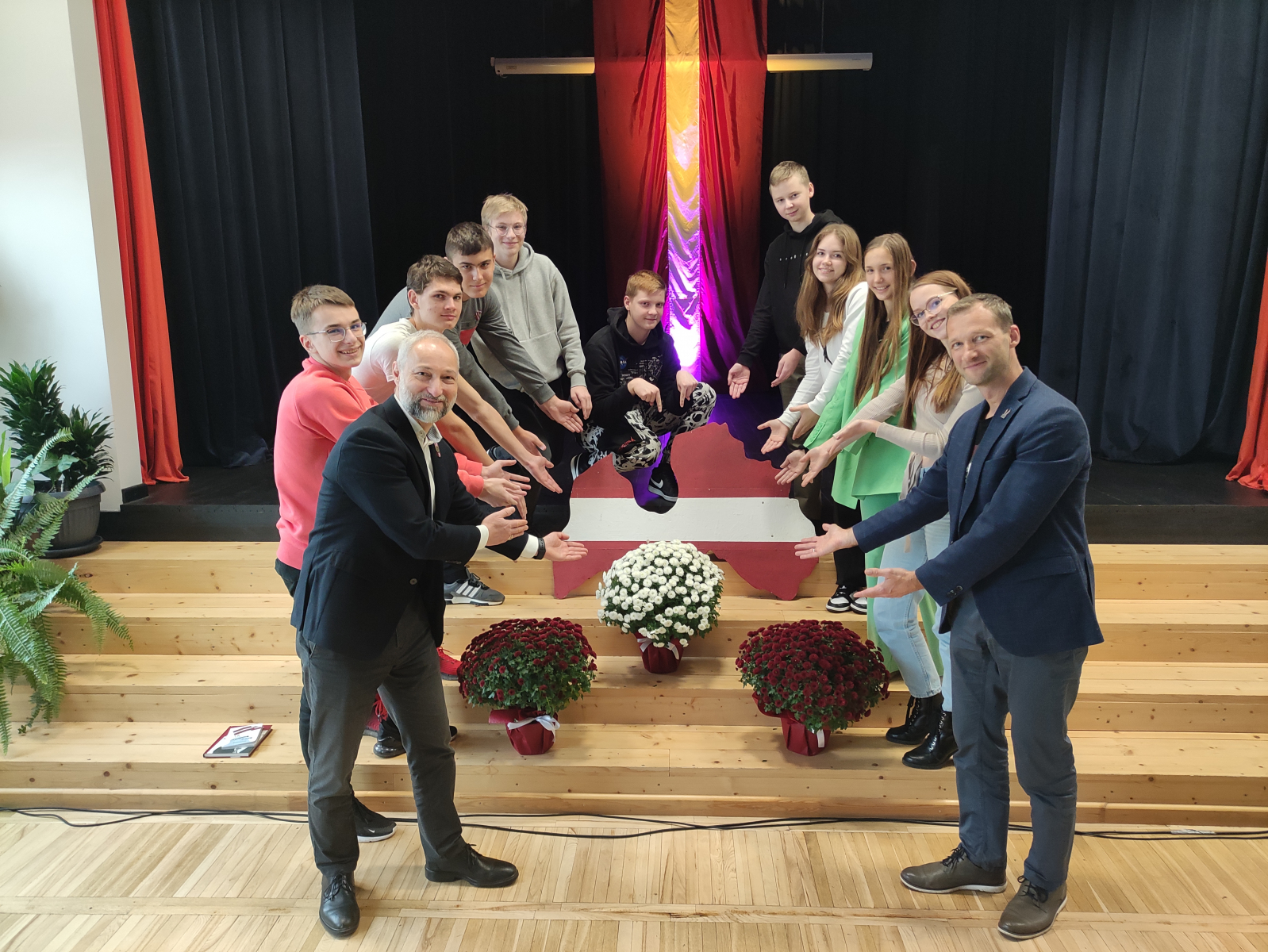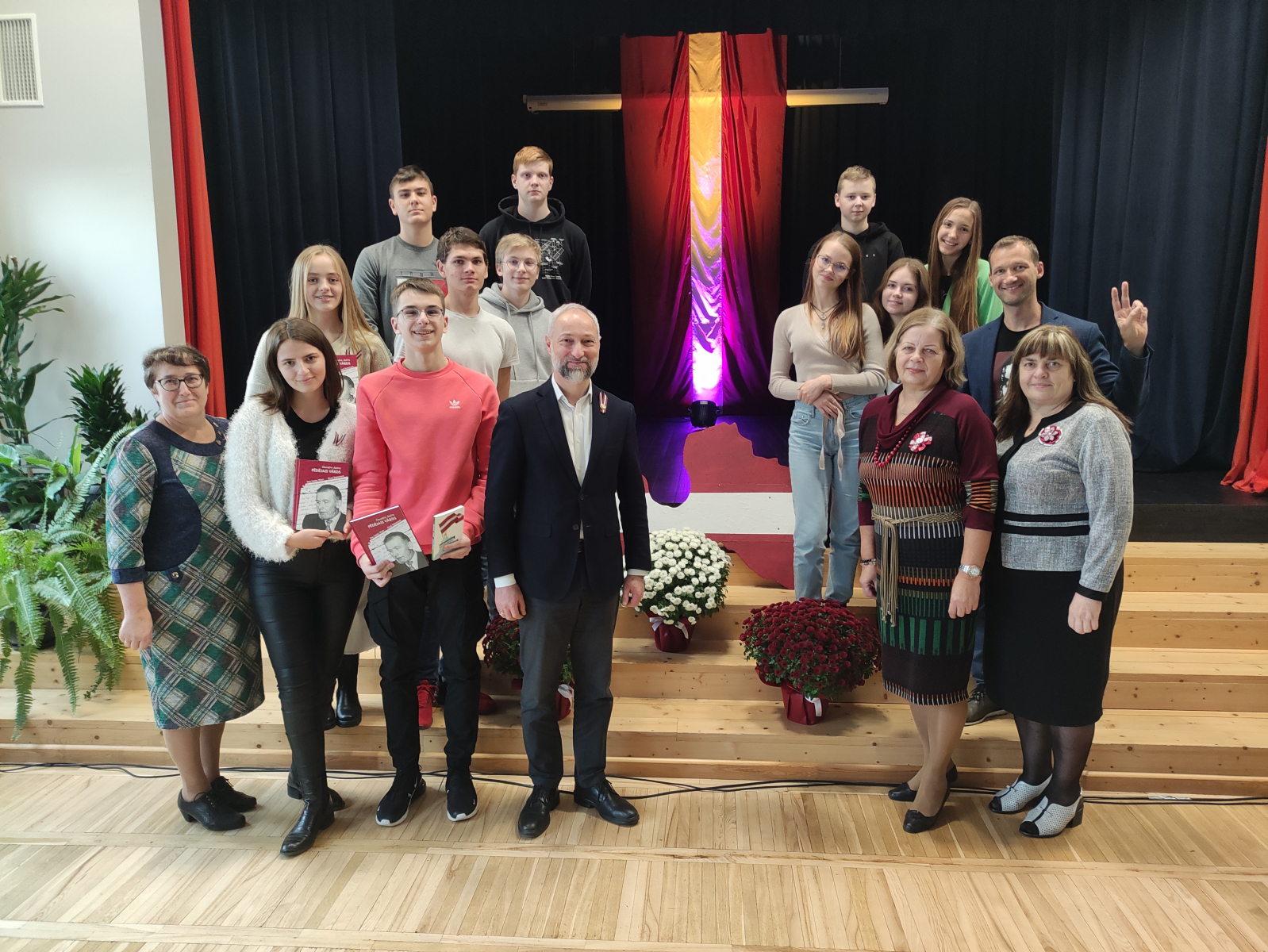 Valsts svētku nedēļā Balvu Valsts ģimnāzija iesaistījās Tieslietu ministrijas un Izglītības un zinātnes ministrijas kampaņā “Es, Tu un Satversme”, kas veltīta Satversmes simtgadei. Kampaņas ietvaros 9., 11., 12.klašu skolēni tikās ar Satversmes vēstnesi, Tieslietu ministru Jāni Bordānu un Tieslietu ministra padomnieku Imantu Krastiņu. Jaunieši ar interesi klausījās stāstījumu un ieguva papildus zināšanas par valstiskumu, par Satversmes tapšanas vēsturi un pamatvērtībām. Ministrs Bordāns dalījās arī savā profesionālajā jurista pieredzē. Jaunieši iesaistījās sarunā, uzdeva jautājumus un kā dāvanu saņēma grāmatas un pildspalvas ar Tieslietu ministrijas logo. Skola dāvinājumā saņēma Gunāra Astras grāmatu “Pēdējais vārds”.