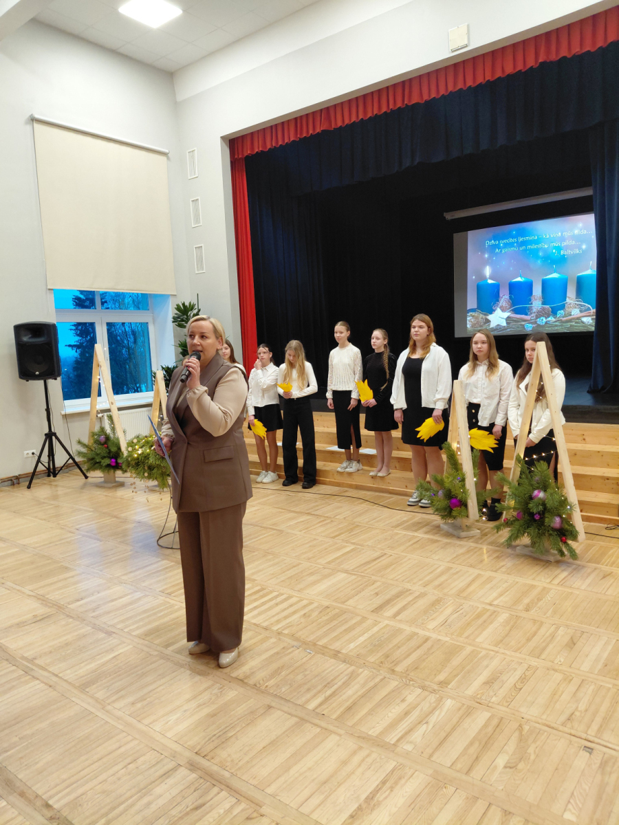 Pasākuma laikā svinīgu svētku uzrunu teica skolas direktore K.Lele, uzsverot, ka katrai svecei, ko mēs iededzam gada skaistāko svētku gaidīšanas laikā, ir simboliska nozīme. Direktore aicināja sniega baltumu meklēt sevī, domājot labas domas, sakot iedvesmojošus vārdus citiem un darot darbus, kas palīdz tiem, kuriem tas visvairāk ir nepieciešams. Uzrunas noslēgumā direktore vēlēja brīnumiem pilnu, ticībā, cerībā un mīlestībā caurvītu Adventes laiku. Pasākumā klātesošos uzrunāja un svētību skolai, skolotājiem un skolēniem deva Balvu katoļu draudzes priesteris Daumants Abrickis, uzsverot, ka Ziemassvētki ir gaidīšanas laiks, kura patiesā nozīme ir ticība, cerība un mīlestība.