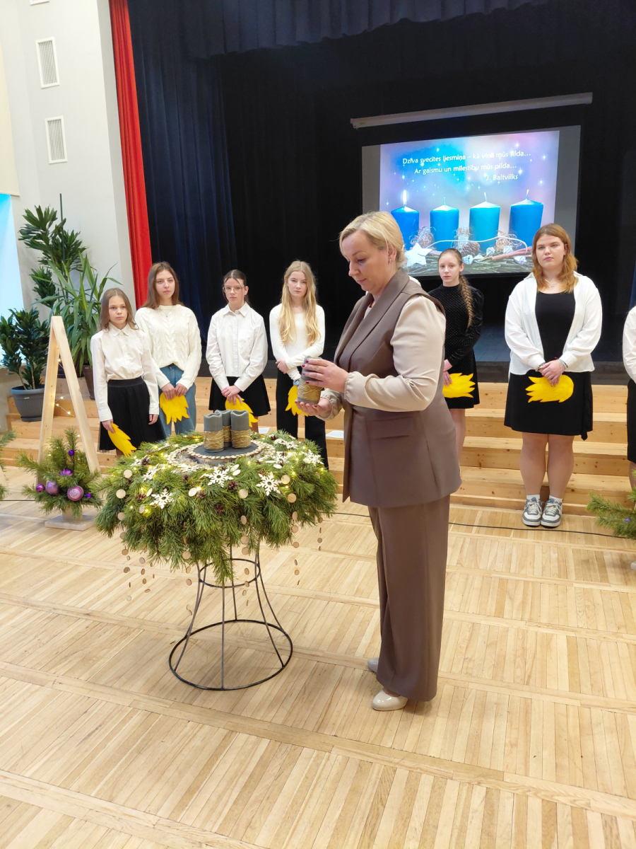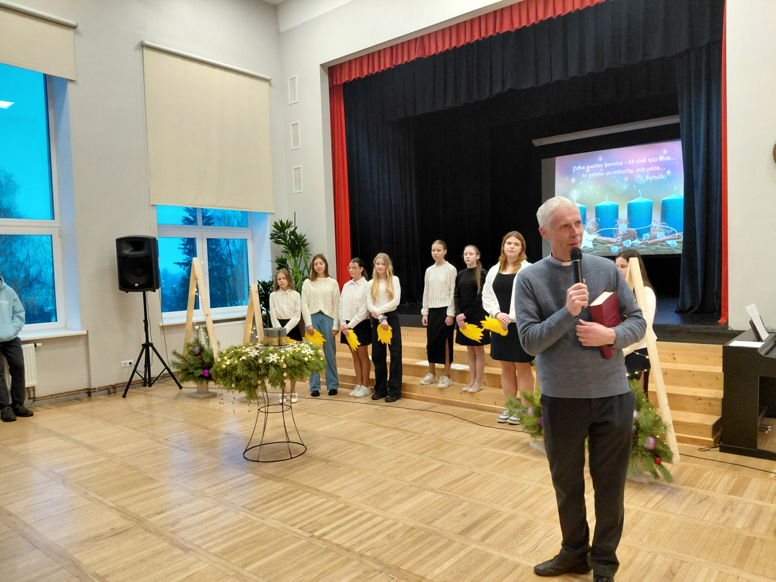 Četras svētdienas pirms Ziemassvētkiem tiek dēvētas par Adventes svētdienām. Šogad pirmā Adventes svētdiena tika atzīmēta 30. novembrī, kas kristīgajā pasaulē iezīmē Ziemassvētku gaidīšanas sākuma dienu. Balvu Valsts ģimnāzijā svinīgs svētku pasākums un pirmās adventes sveces iedegšanas pasākums norisinājās 1.decembrī, kuru vadīja izglītojamo pašpārvaldes prezidents Renāts Vilipsons. Svētku noskaņas radīšanai skanīgu dziesmu izpildīja kora un ansambļa skolēni.